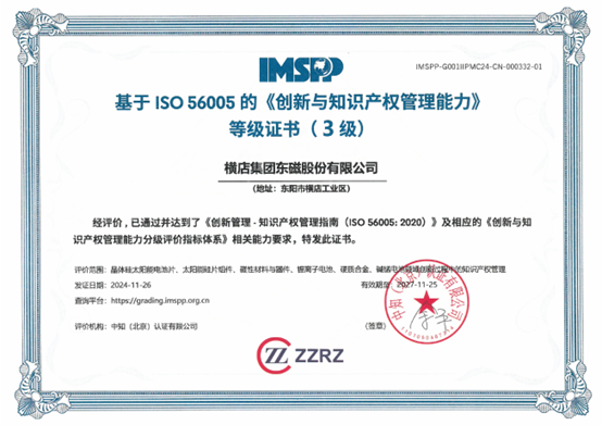 此次獲得ISO 56005三級認證,既是對橫店東磁過去努力的認可,也是對未來發展的激勵。公司將以此為契機,深化創新管理與知識產權戰略的融合,加速科技成果轉化應用,提升自主創新能力。